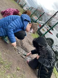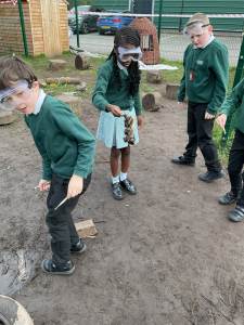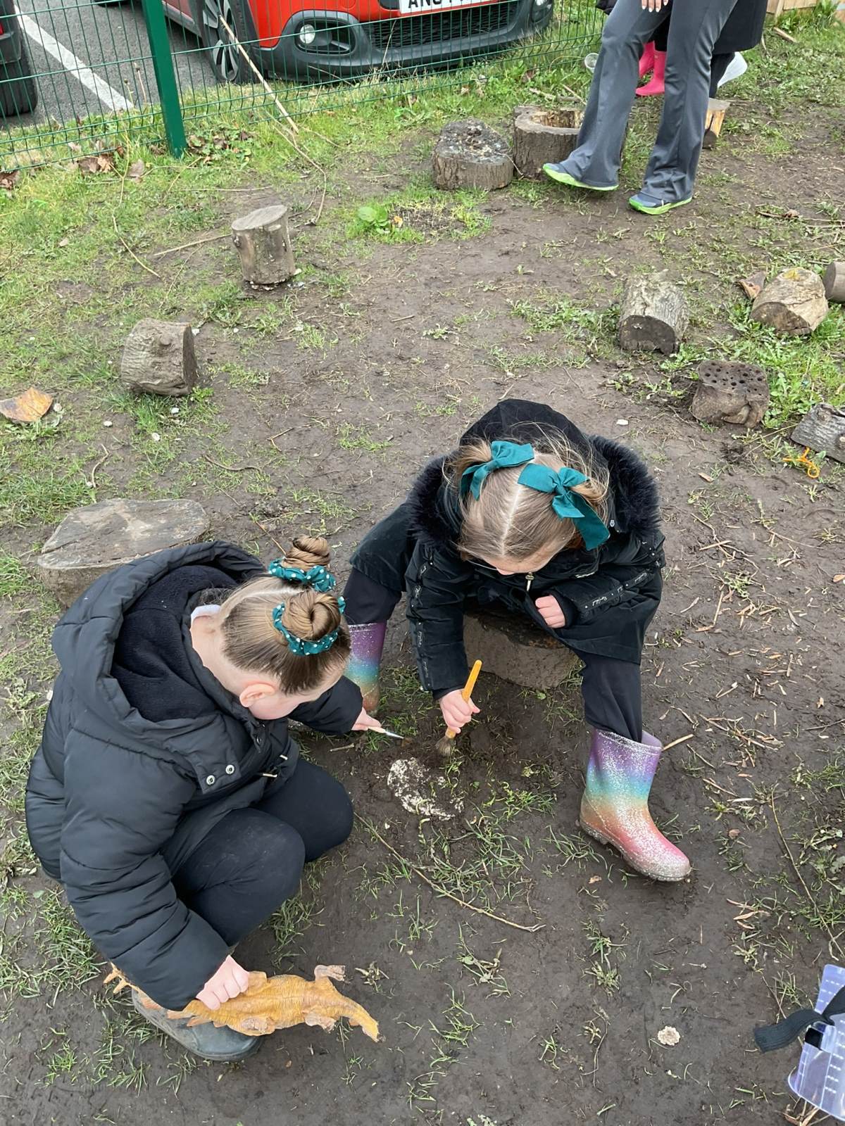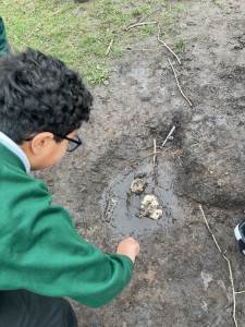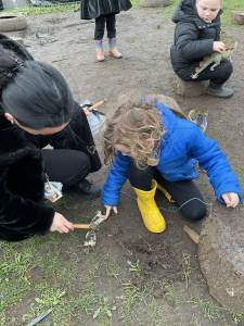 This week, the children became real scientists as they investigated mysterious discoveries in our outdoor classroom. The area was closed after fossils, bones, and unusual footprints were found, and our young palaeontologists explored the garden to search for clues, many predicting they belonged to dinosaurs from long, long ago.