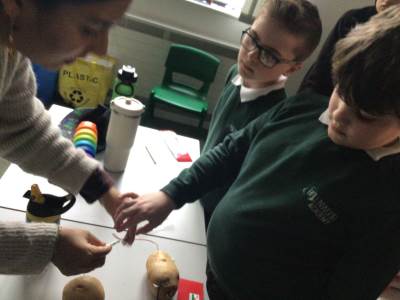 In the classrooms, the children also carried out exciting scientific experiments. They observed a carbon-dioxide reaction in the Mentos and lemonade investigation, explored colour diffusion with Skittles and milk, generated electricity using potatoes to light a bulb, and compared density in a float-and-sink activities. They made predictions, observed changes, and used scientific vocabulary throughout.