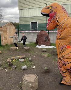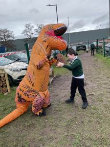 To end the excitement, a T-Rex visited the garden to congratulate our young scientists on their fantastic work.