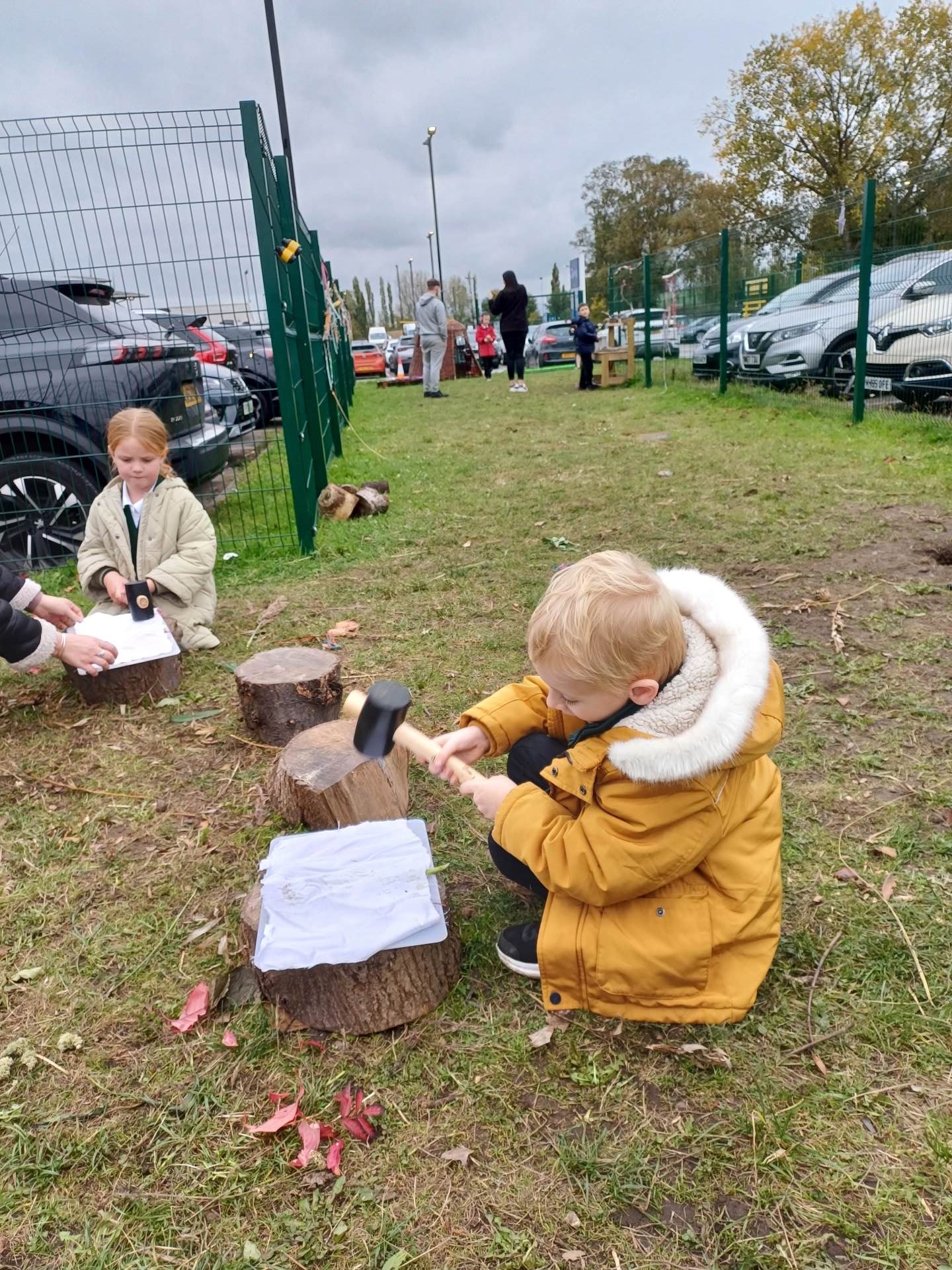 In our outdoor classroom the children have been learning about birds and the important role they play in biodiversity to help sustain our eco system. They identified varied species of birds and made bird feeders. They have also learnt how leaves change colour in the Autumn season and before trees shed their leaves. They have listened to ‘The Leaf Thief’ story and collected leaves, identified which trees they came from and created clay leaf plaques which they took back to class and painted them in their art lesson. This week they collected leaves and created leaf prints on material. Well done everyone."