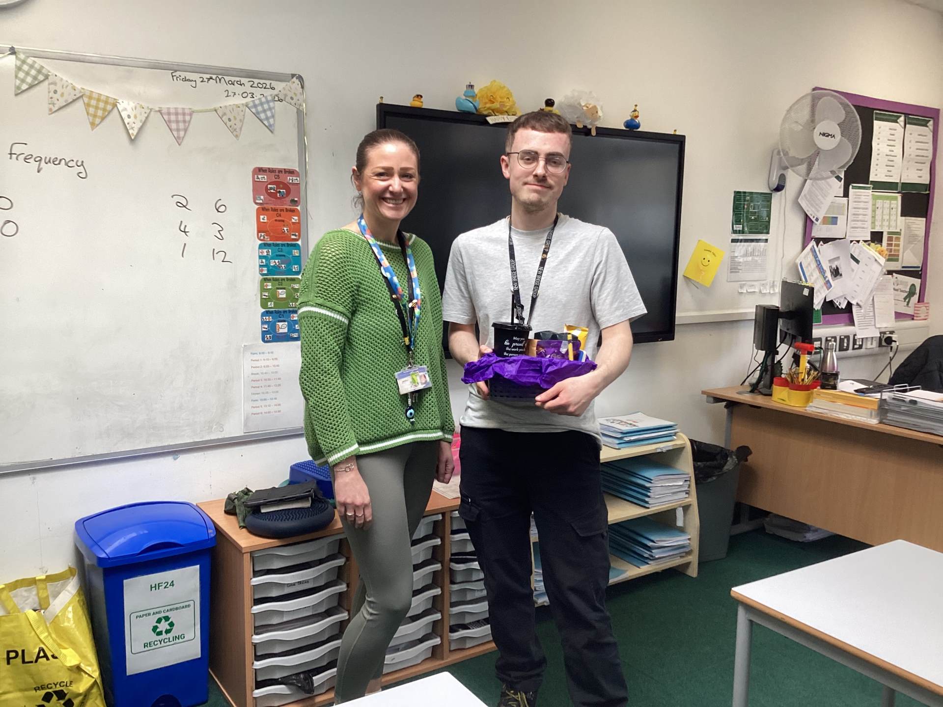 Both colleagues received well-deserved wellbeing hampers as a small token of our thanks for their ongoing commitment and the positive impact they make within our school community.