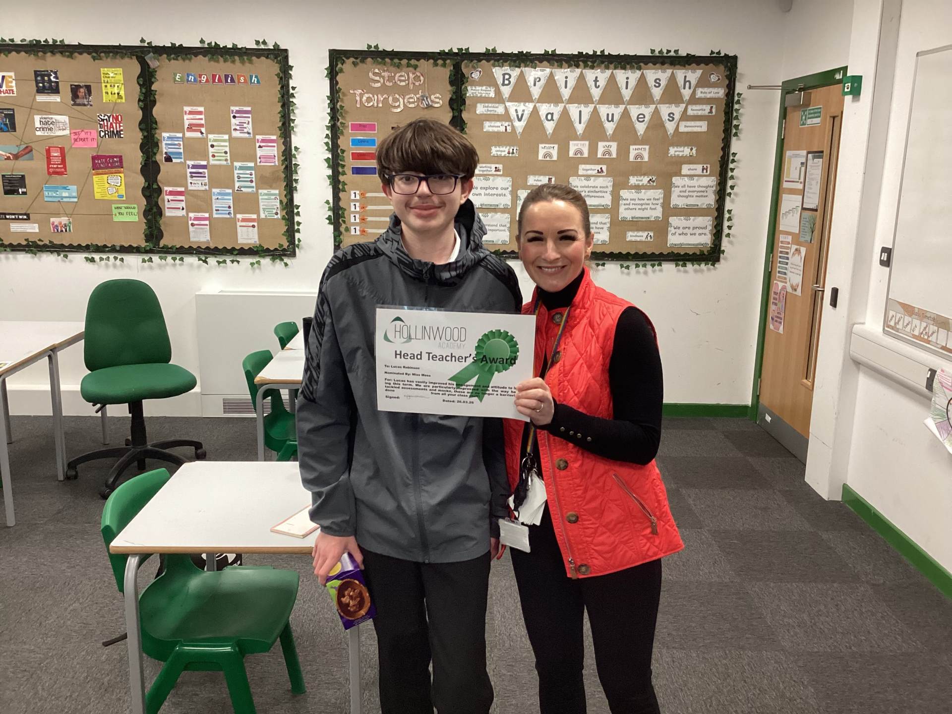 Staff wellbeing is, and will always be, a priority at Hollinwood Academy. Today, we were delighted to recognise two members of our team who consistently go above and beyond.