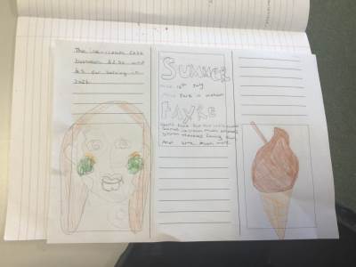 In English, we have been looking at different forms of writing using a range of writing techniques. They have written a newspaper article to show if they think that cyclists should be allowed on the roads or they should have their own paths. They have also written a leaflet for an event of their choice.