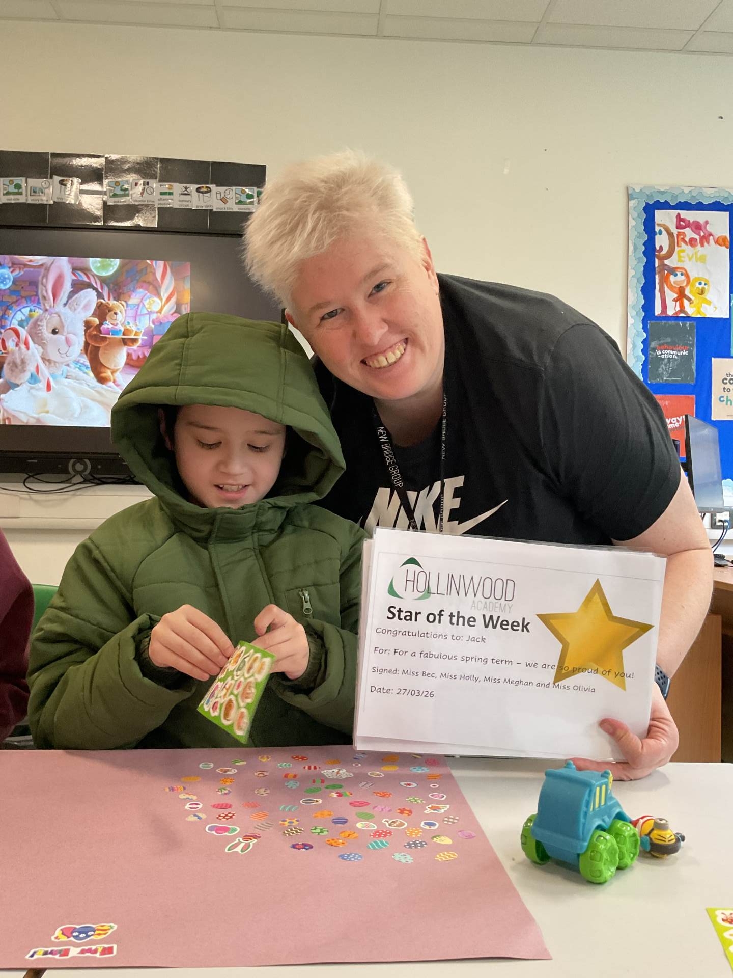 Mrs Quinn’s and Miss McDonald’s STAR of the week is Cody for doing an egg-cellent job sorting the Easter egg colours. Well done Cody.