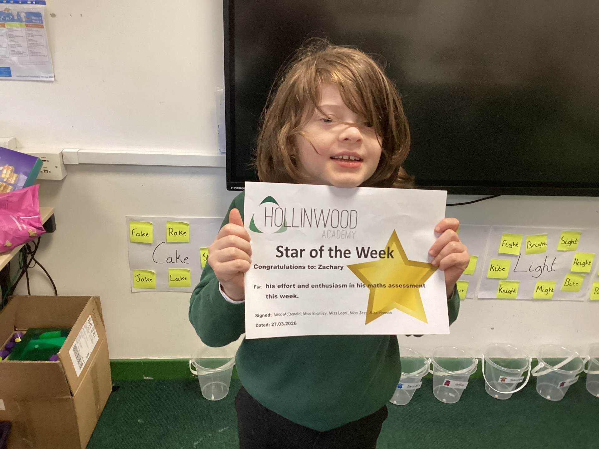 Mrs McDonalds’ and Mrs Bramley’s STAR of the Week is Zachary for his effort and enthusiasm in his maths assessment this week.