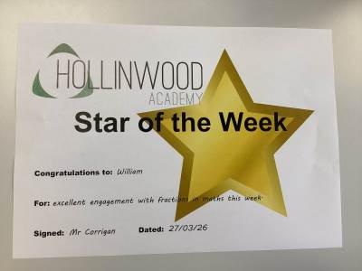 Mr Corrigan’s STAR of the Week is William for excellent engagement with fractions in maths this week.