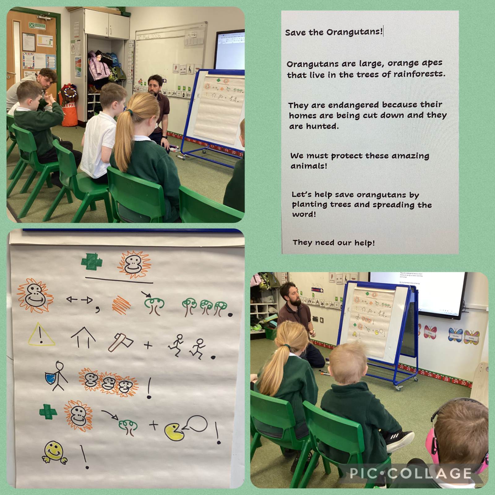 Our Talk for writing model text this half term is There’s a Rang-Tan in My Bedroom. This week we have used our art skills, Signalong actions and story maps to embed the key themes of the story.