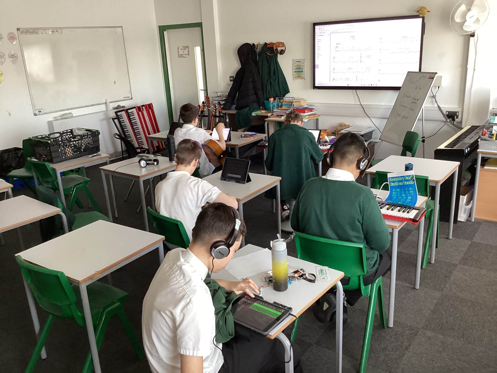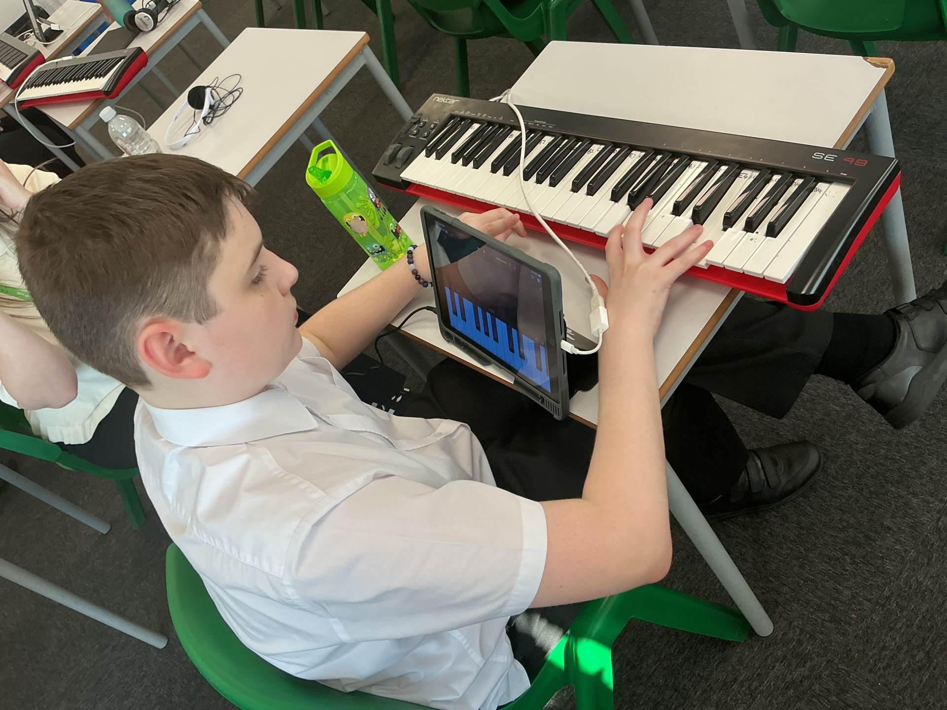 "This term Year 7 have been exploring creating their own musical ideas using Garageband, Chrome Music Lab and keyboards. We’ve listened to their pieces as a class and have been amazed at some of the fantastic creations they have made.