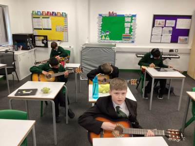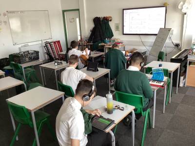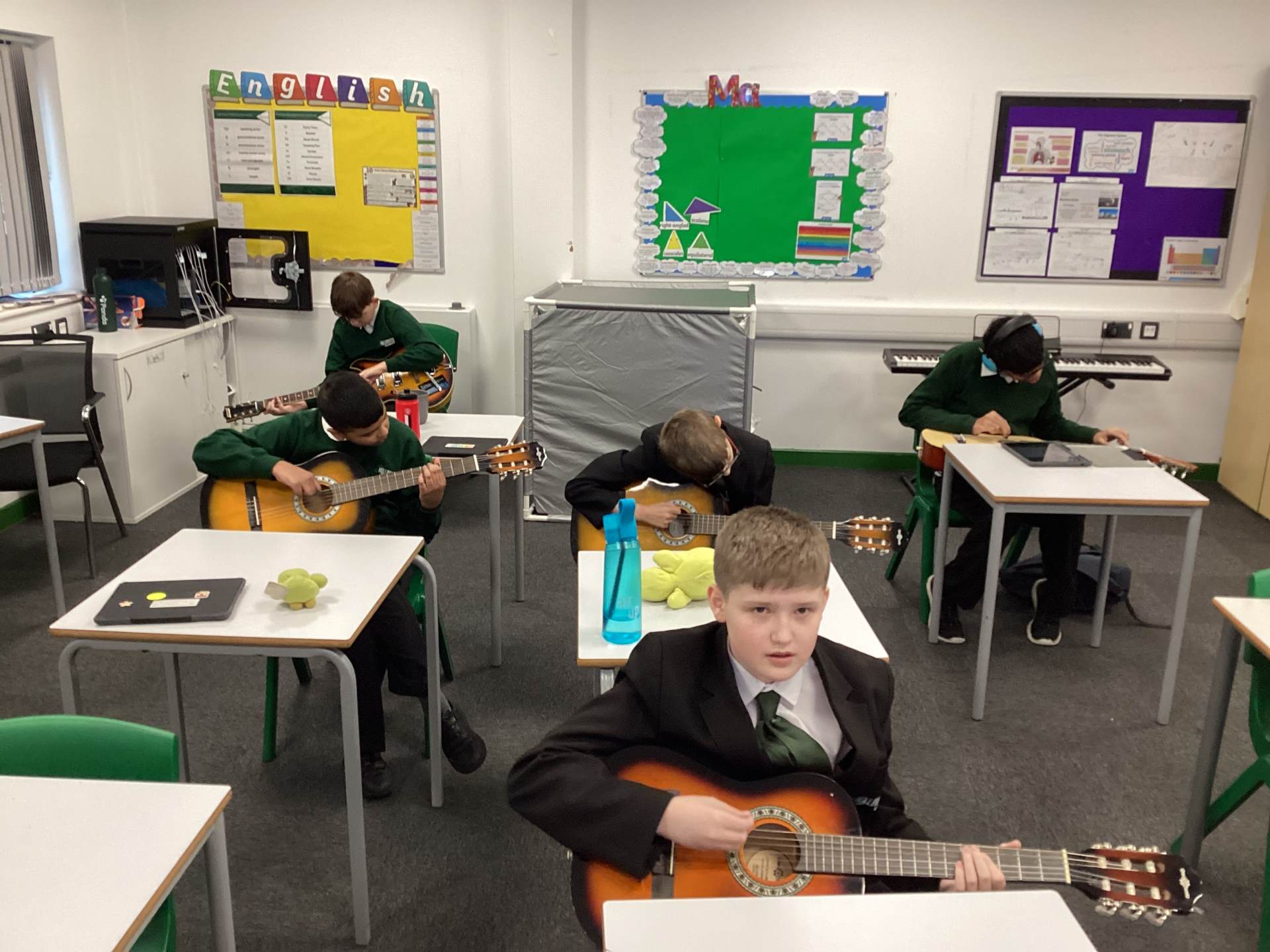 "This week 9HBY have been playing a song of their own choosing on different instruments. The songs have included Twinkle Twinkle, Creep by Radiohead, and Photograph by Weezer. We were very impressed with the results.