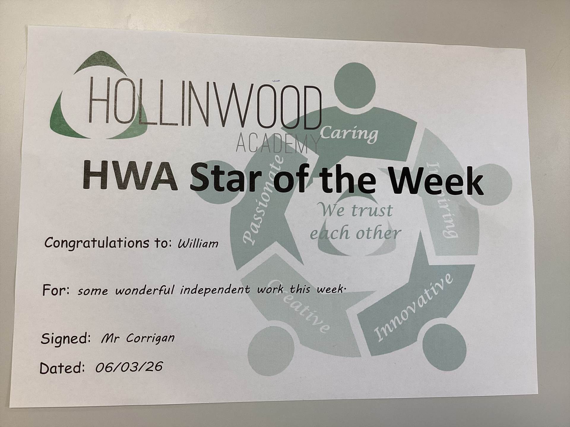 Mr Corrigan’s STAR of the Week is William for some wonderful independent work this week.
