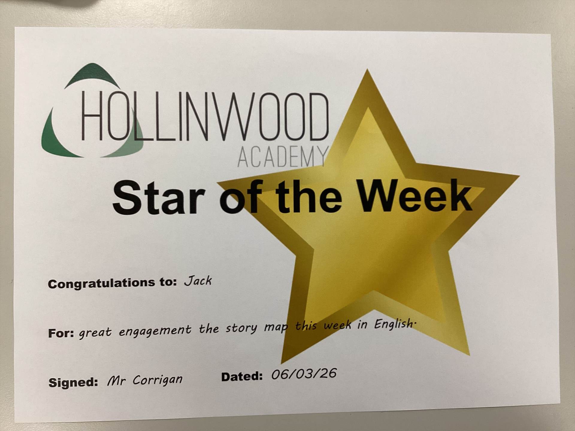 Miss Boothroyd’s STAR of the Week is Nico for his improved positive behaviour this week.