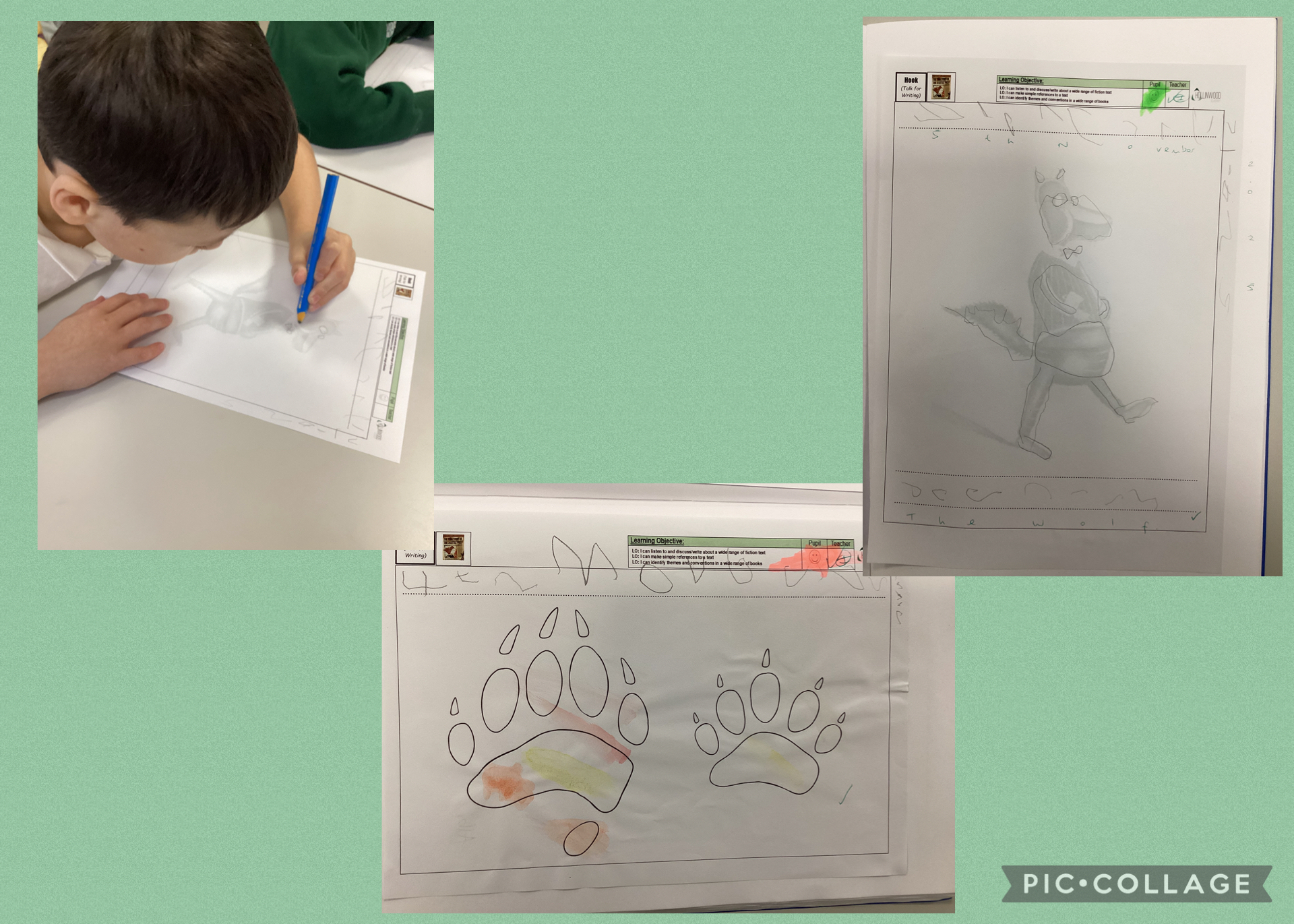 Our Talk for writing model text this half term is The True story of the Three Little Pigs. This week we have used our art skills as a hook to introduce the book and looked into the personification of the main character.