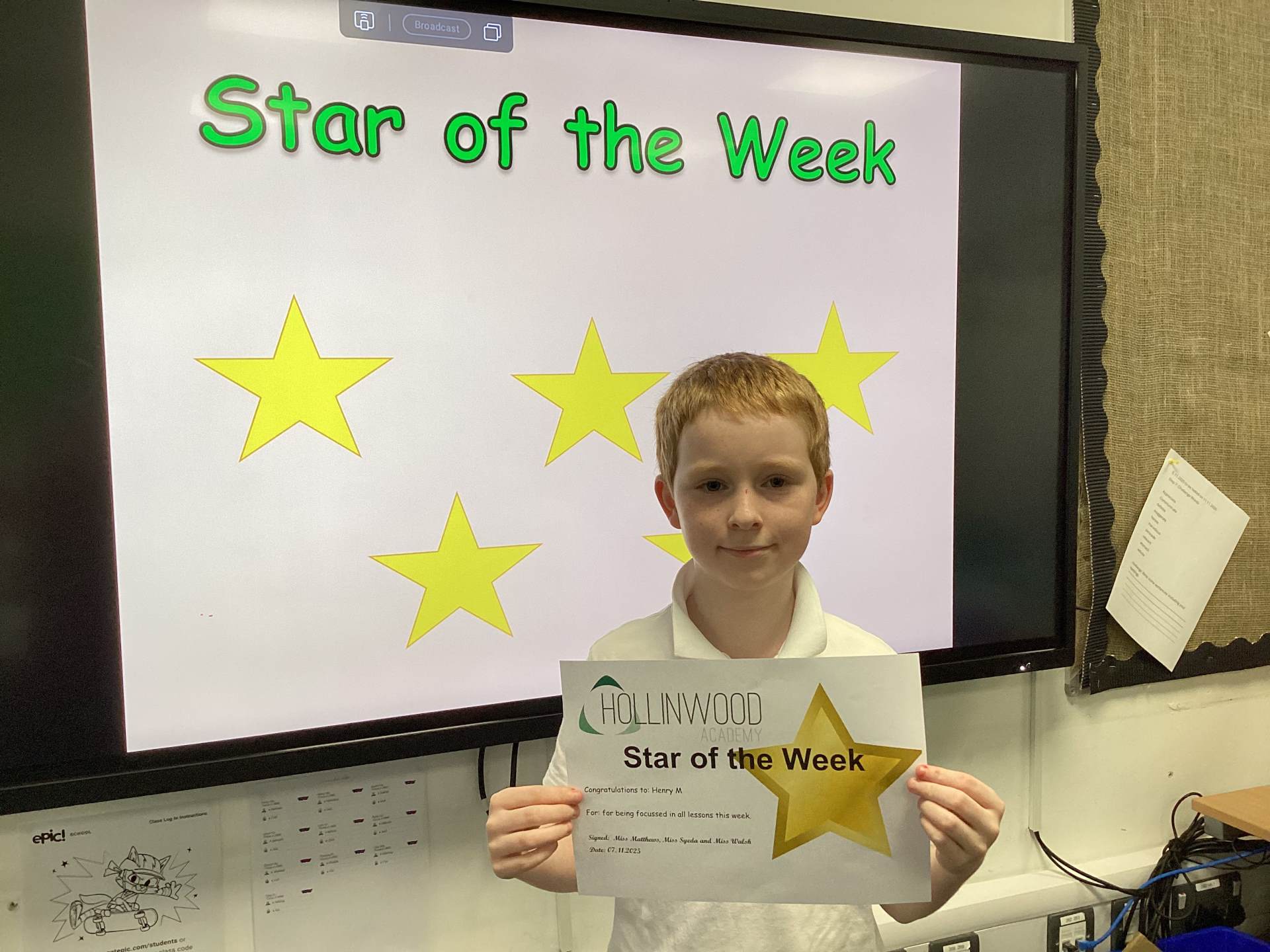 Mrs Matthews’ STAR of the Week is Henry R for being focussed in all lessons this week.