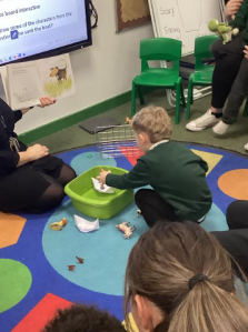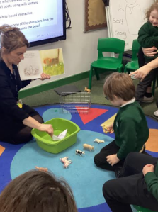 Out Talk 4 Writing stories this half term are all based around traditional tales. This week we started to look at the story The Three Little Pigs. We learnt some of the repeated refrains and then when in Soft play we acted out parts of the story, blowing houses down and pretending to be pigs and big bad wolves.