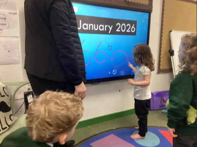 "Happy New Year, and what a great, new and fresh start we have had to our term so far. We started the week by celebrating the New Year by re-enacting the moment with Big Ben and the stroke of midnight. We sang the song auld lang syne, and all held hands and celebrated. We looked at the new number for the year and all had a go at writing the new number 2026.