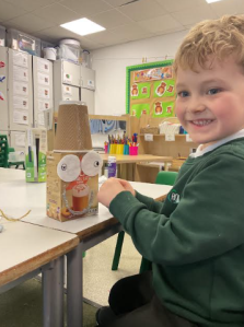 This half term we have started our new topic within Design Technology. This is all about structures and junk modelling. First we investigated different ways to attach things together, we used tape, glue, paper clips and stickers. Miss Emma created a cup monster to demonstrate the skills, then children had free reign to create anything that they wanted using the materials provided. We had a lot of fun.