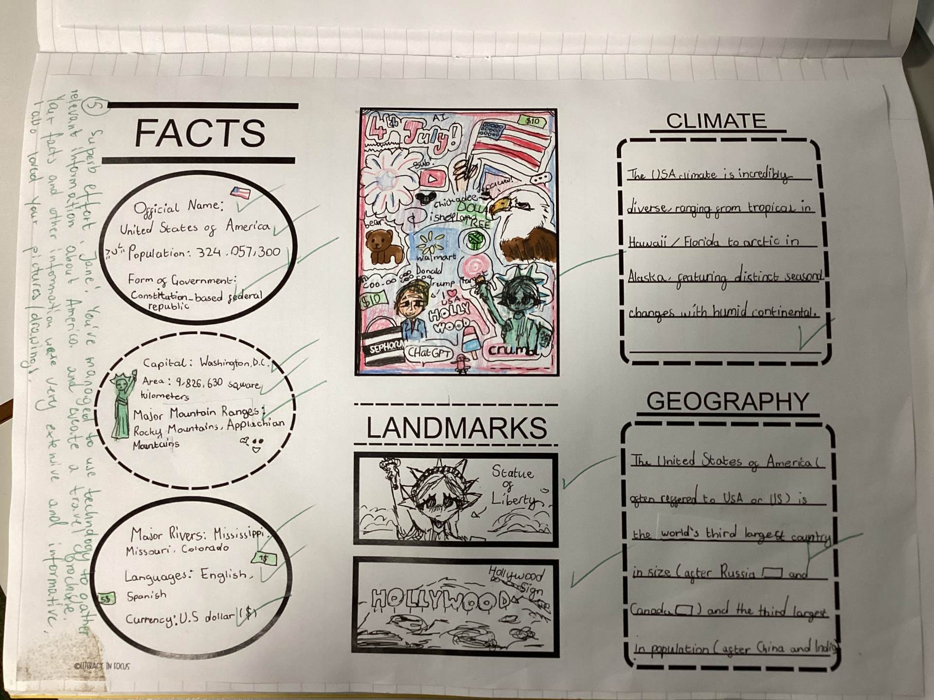 To put our new skills into practice, we designed a travel brochure. This project allowed us to highlight the positive aspects of a location we chose. We had three options: the USA, Canada, and the Maldives. Each student picked one location and conducted research using links to National Geographic for Kids that were provided in Teams. This research helped us gather interesting facts and details to include in our brochures.