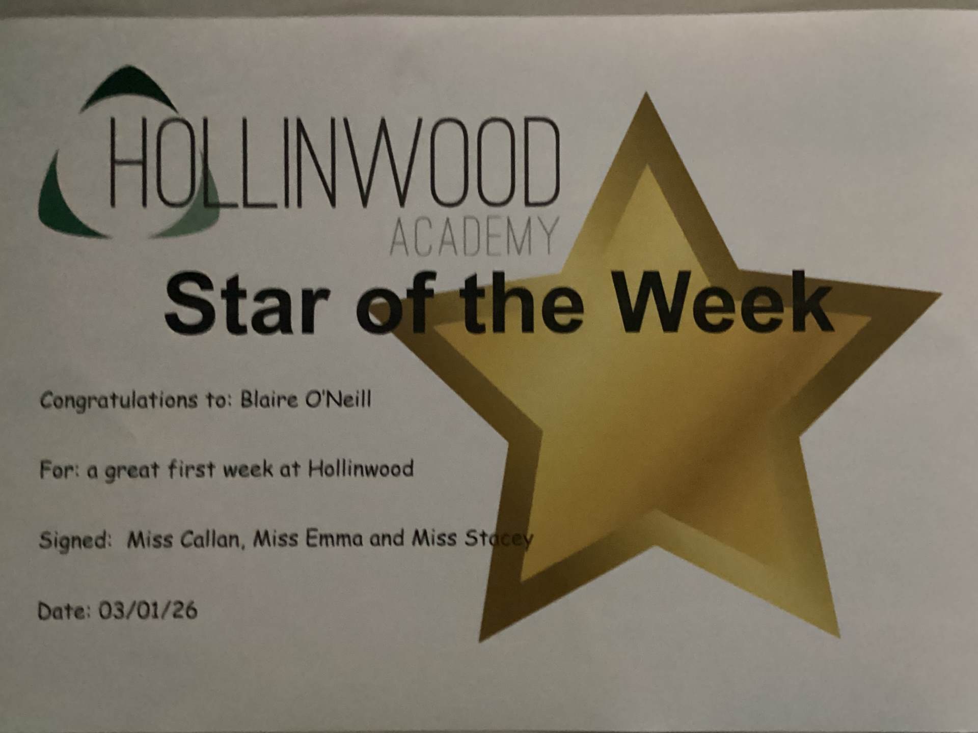 Mrs Lerigo’s and Mrs Sutcliffe's STAR of the Week is Blaire- for a great week settling into her new class.