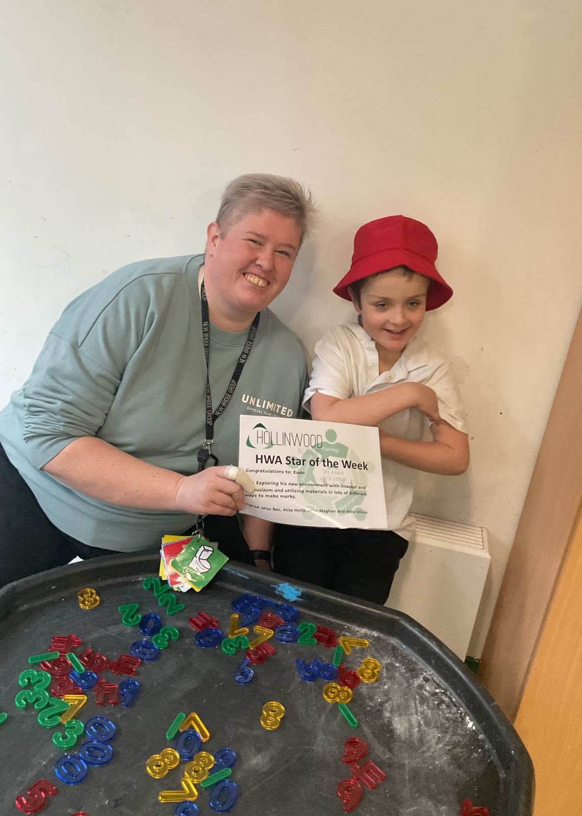 Mrs Bailey’s HWA We Are Creative goes to Euan - For exploring his new environment with interest and enthusiasm and utilising materials in lots of different ways to make marks.