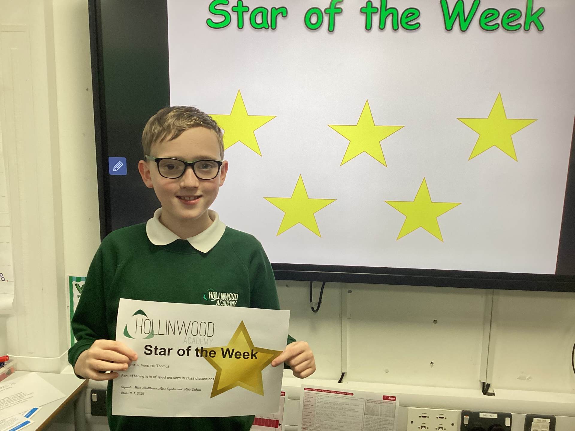 Mrs Matthews’ STAR of the Week is Thomas for offering lots of good answers in class discussions.