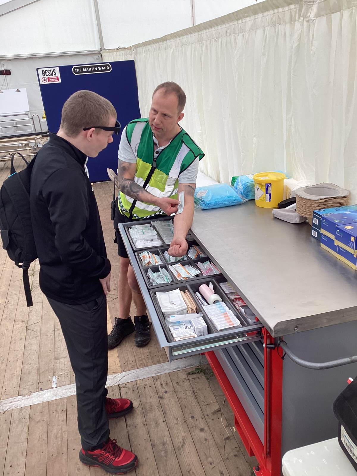 The lead of health and safety came and spoke to us about her role. How she has to organise medical help, transportation of goods and flooring and over sees everything and everyone that comes in and out of the festival.