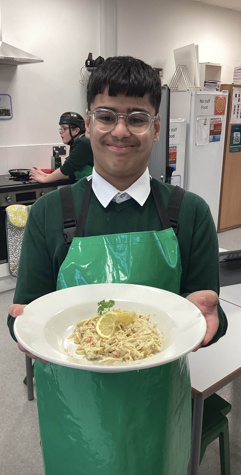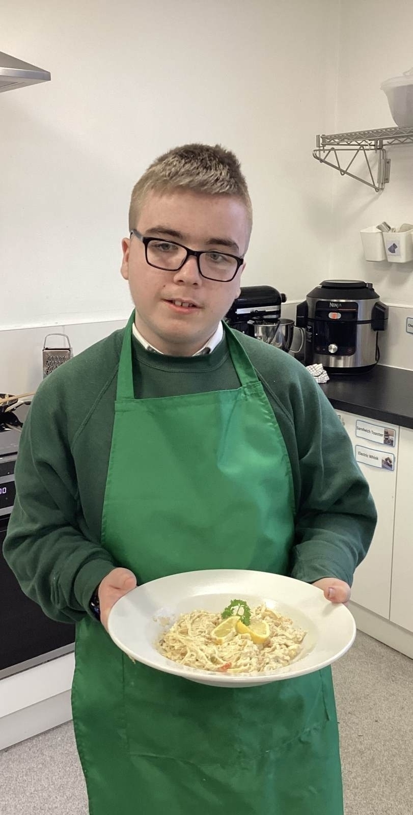 Pupils showed of their culinary skills today by preparing and cooking Salmon linguine. The year 9 students were able to challenge themselves by experimenting with new flavours, textures, and aromas. We are proud, not only of their culinary skills but also that they were able to overcome a range of sensory issues due to these and other needs . The Salmon was provided courtesy of AlaskaSeafoodUK. Thankyou.