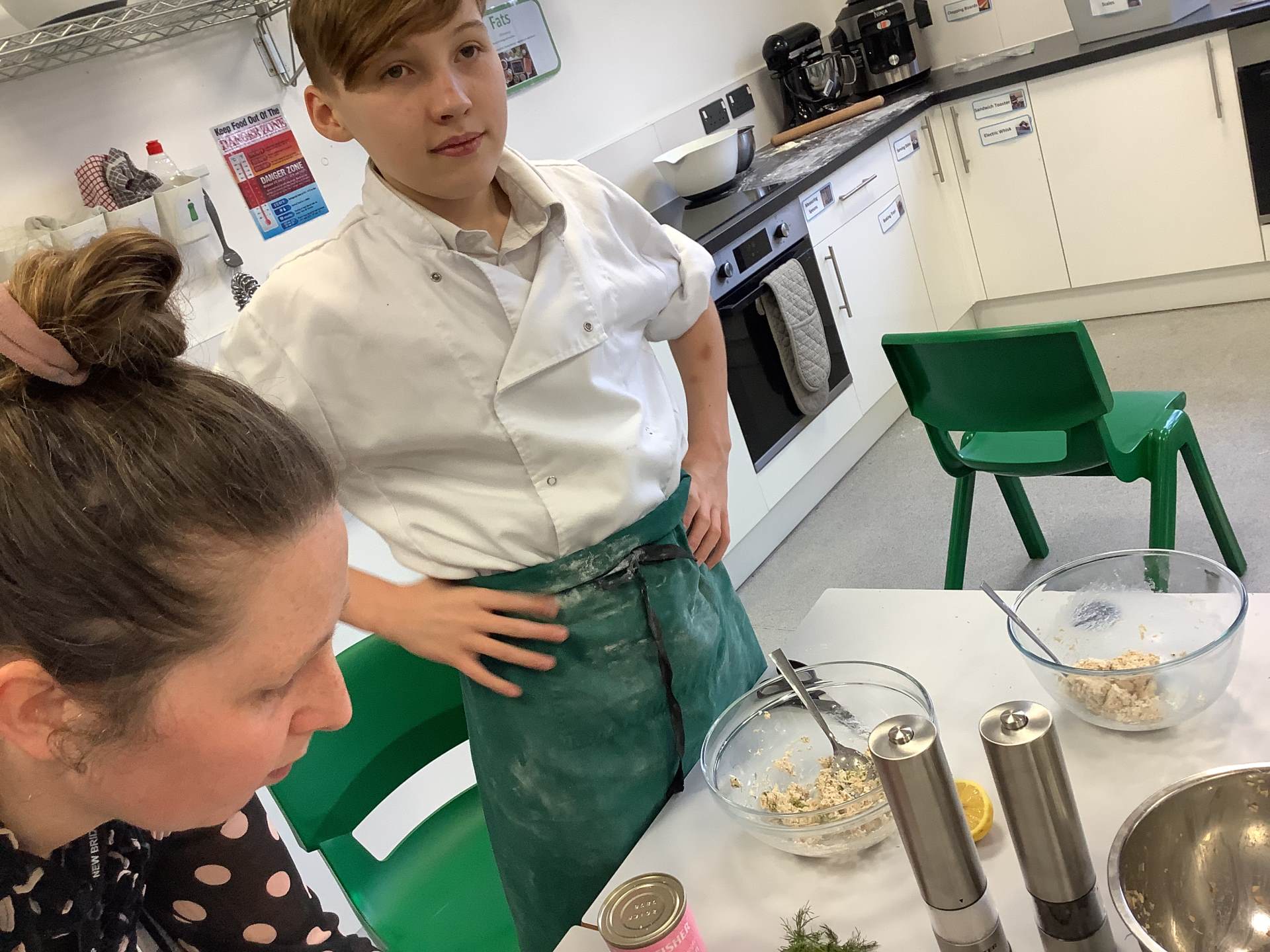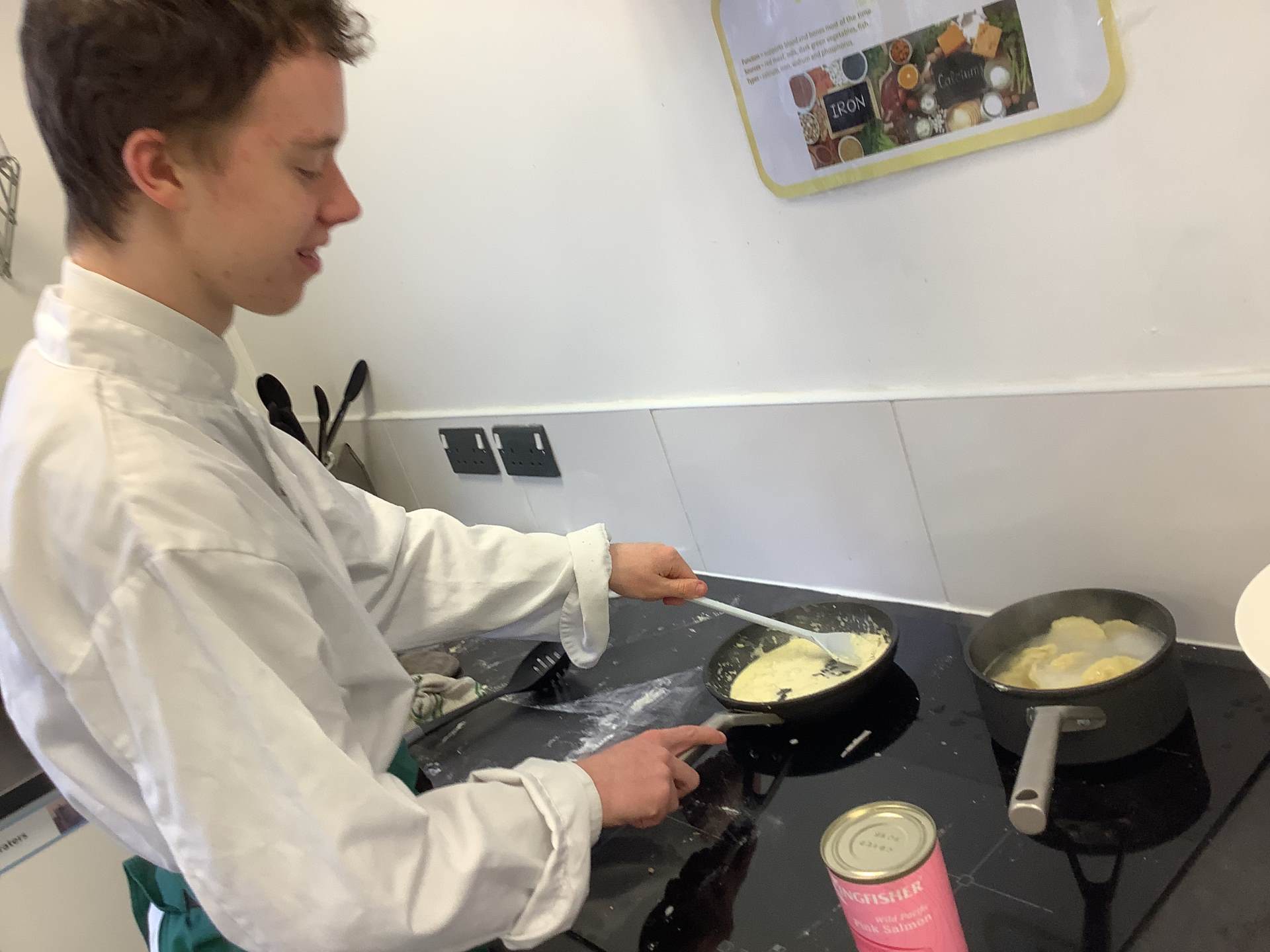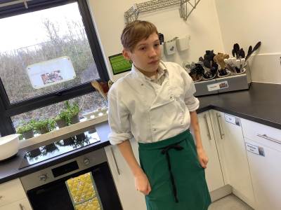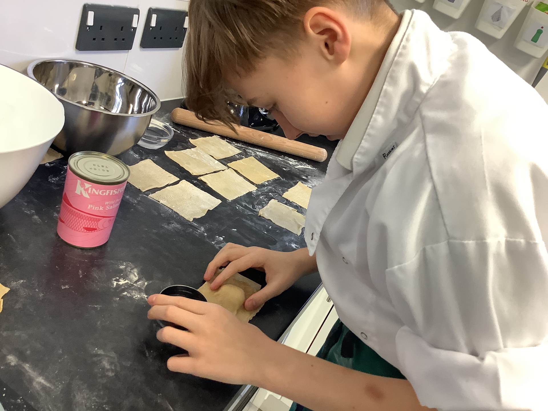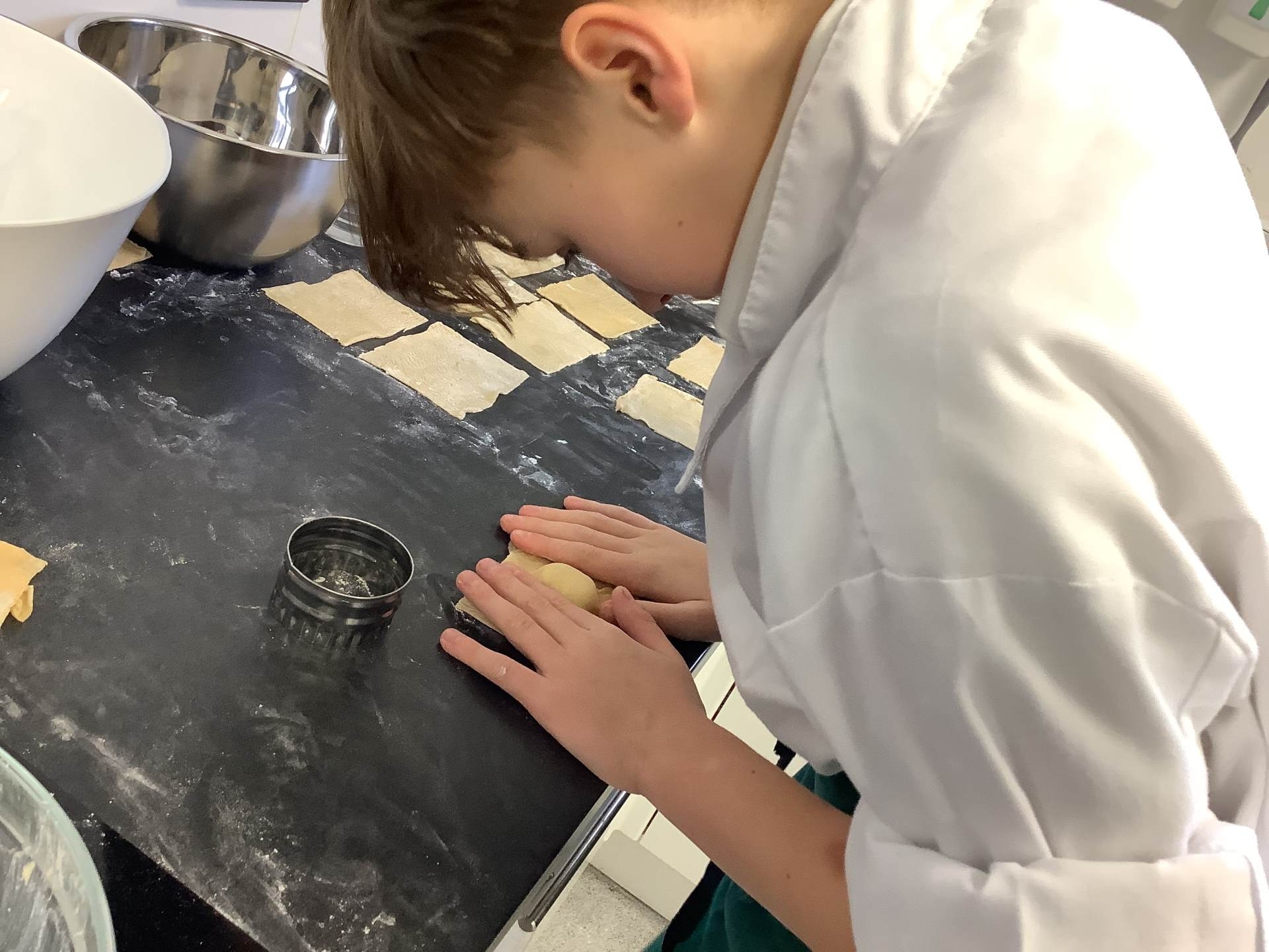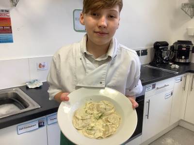 Year 10s were so excited to put their whites on today to produce a ravioli dish with Alaskan Salmon. They made a pasta from scratch using '00' flour and egg. They filled the ravioli with salmon, zested lemon, Dill and ricotta. Then they produced a dill, cream sauce. The ravioli was seriously melt in the mouth, so delicious.