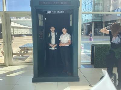 After a wander around the exhibition and gift shop, we had our lunch together outside in glorious sunshine, before moving onto visit the TARDIS in another part of the Lowry Centre.