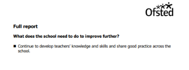 ‘Continue to develop teachers’ knowledge and skills and share good practice across the school.’