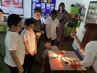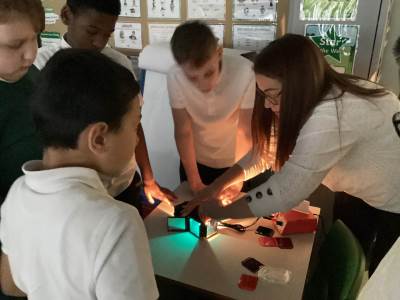 Science proved to be a firm favourite last term as the children explored the world of ‘light’. The children were interested to learn how we see and were able to label various parts of the eye. They discovered that light travels in straight lines, causing shadows when blocked which range in size as the opaque/translucent object is moved closer or further away from the source of light. The class enjoyed exploring this further when they learned that light could refract, and they enjoyed making their own rainbows and mixing filtered colours.