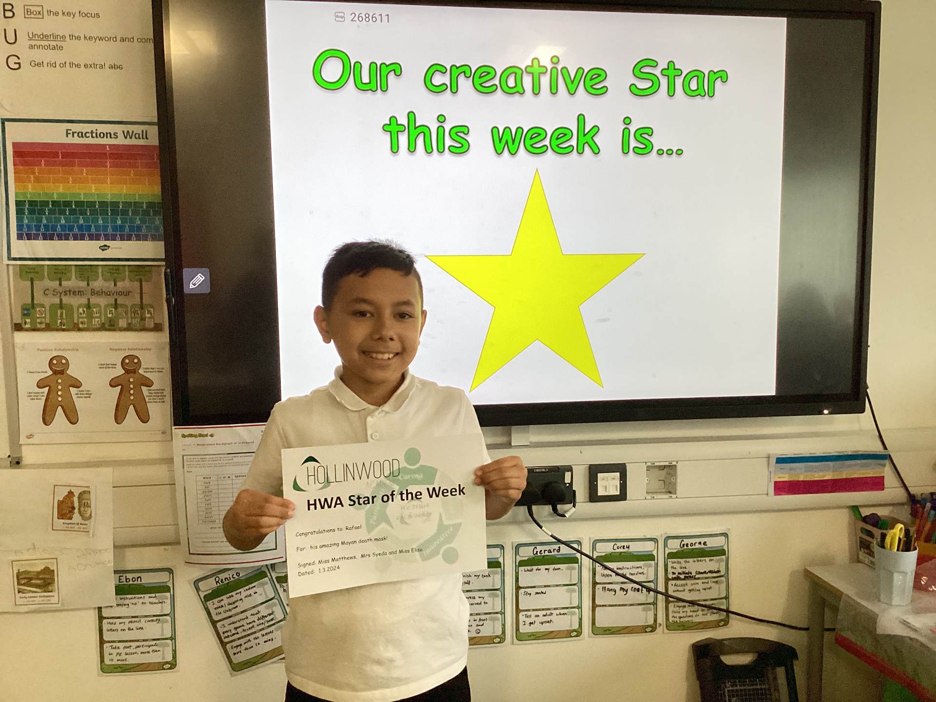 Miss Boothroyd and Miss McDonald’s HWA Creative STAR is Isaam for creating the cutest dinosaur books at home and in school.