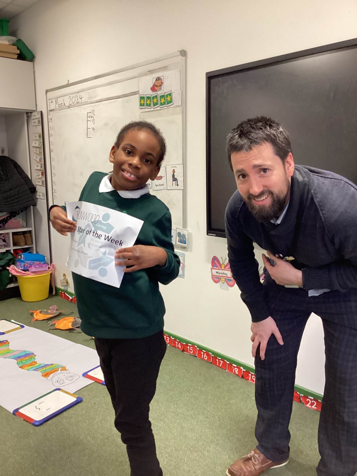 Mrs Davies’ STAR of the week is Shayan for settling back into school and accepting help to regulate.