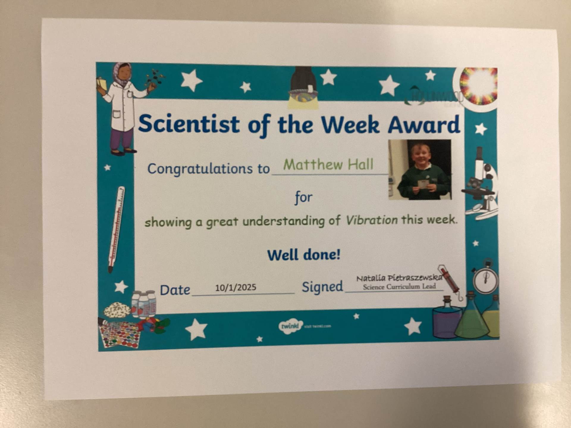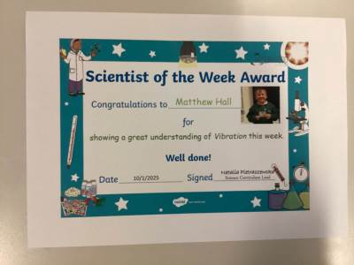 Scientists of the week is Matthew from Mr Corrigan’s class.