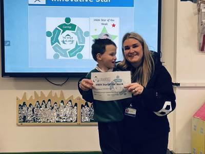Mrs Lerigo’s HWA We are Innovative STAR is Gabriel for brilliant innovative work when creating his frosty winter tree.