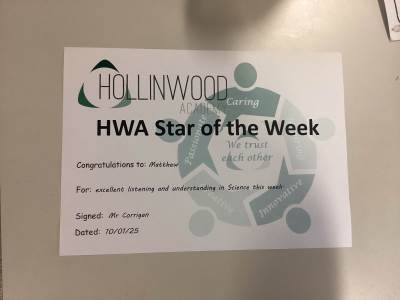 Well done to our secondary Hollinwood Academy STARs this week: