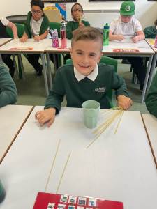 Our maths lessons have been full of creativity and hands-on learning. We kicked things off by diving into Roman numerals an ancient number system that sparked lots of curiosity. To make it even more fun, we used pasta shapes to build the numerals, turning our desks into mini archaeological sites.