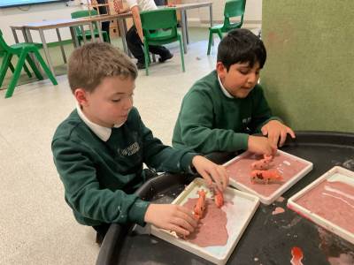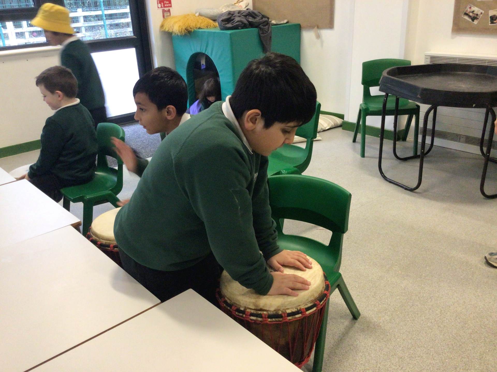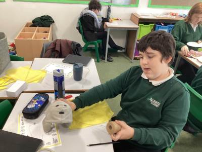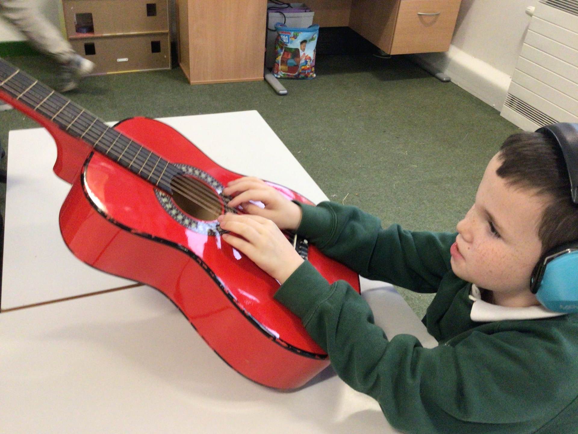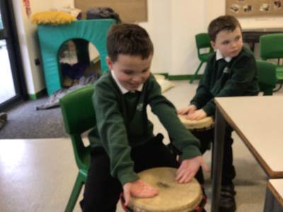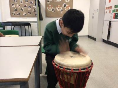 During our outdoor education lesson with Mrs Jen this week we have been to Tandle Hills Country Park collecting twigs and in our music lessons with Mr Scott the children have been exploring various instruments including the guitar which George and Basil have really taken a liking to.