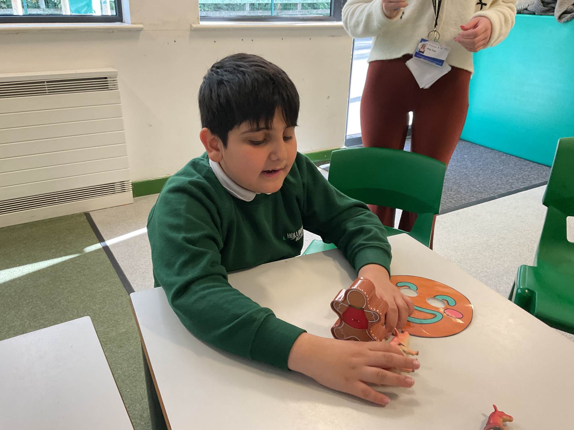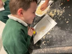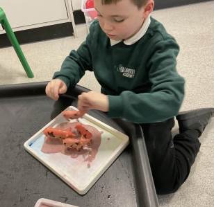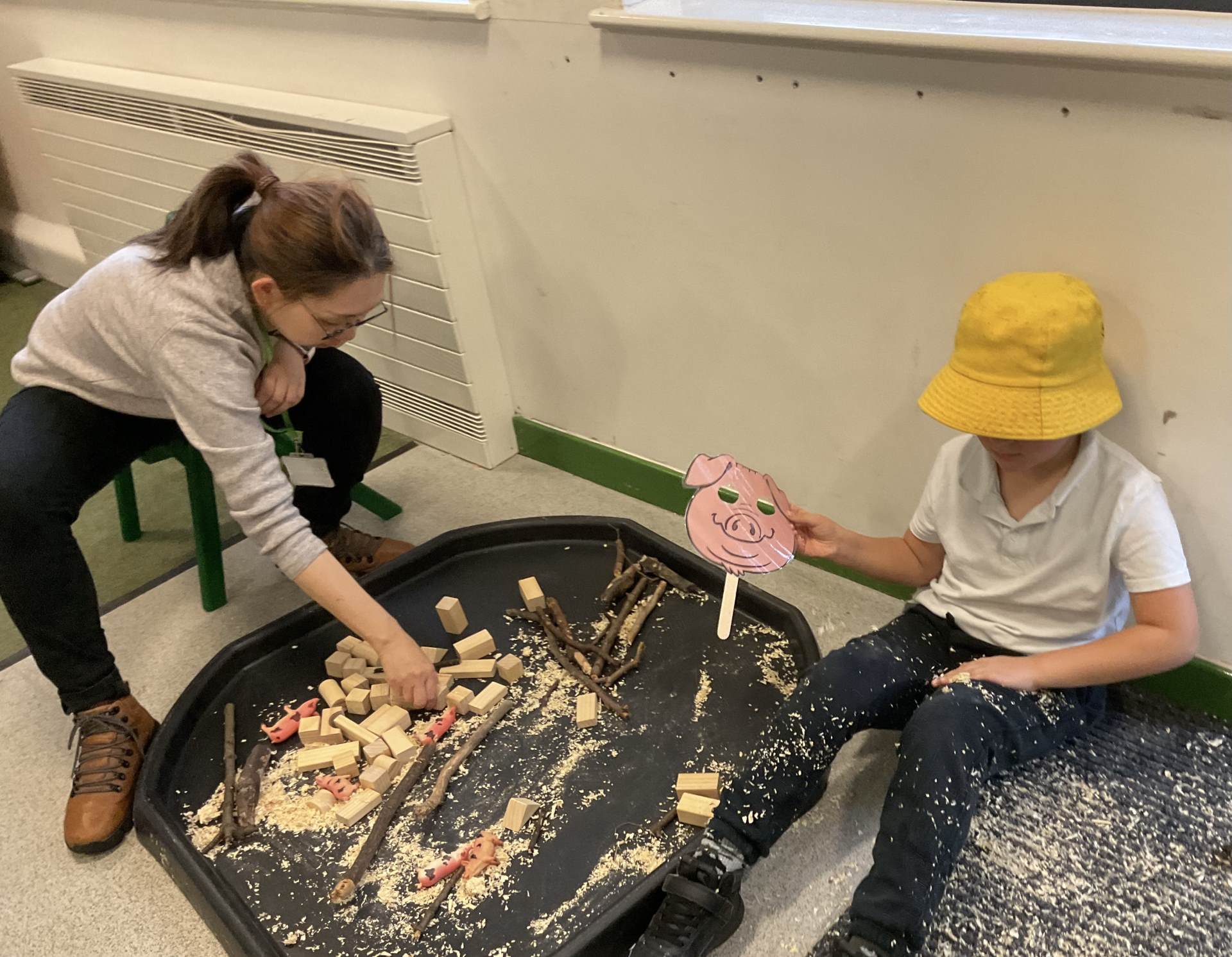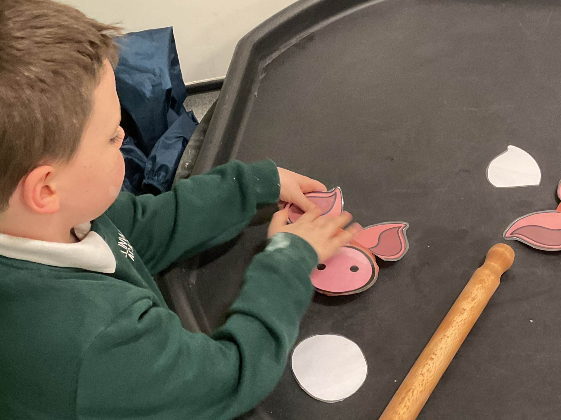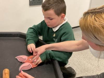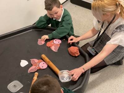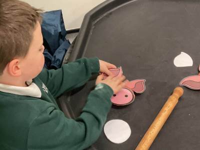 "In Mrs Quinn’s class this half term, our topic is ‘Traditional Tales’ and in English we have been learning about various tales such as 'Goldilocks and the Three Bears' and ‘The Gingerbread Man’. This week we have started our new tale ‘The Three Little Pigs’. The children have been engaging in many sensory activities during our topic such as tasting porridge, making gingerbread playdough, creating straw houses and playing with pigs in sticky mud. Some of our children have also been exploring the use of Colourful Semantics to begin to look at ‘who’ and ‘what’ is in the stories they have been exposed to.