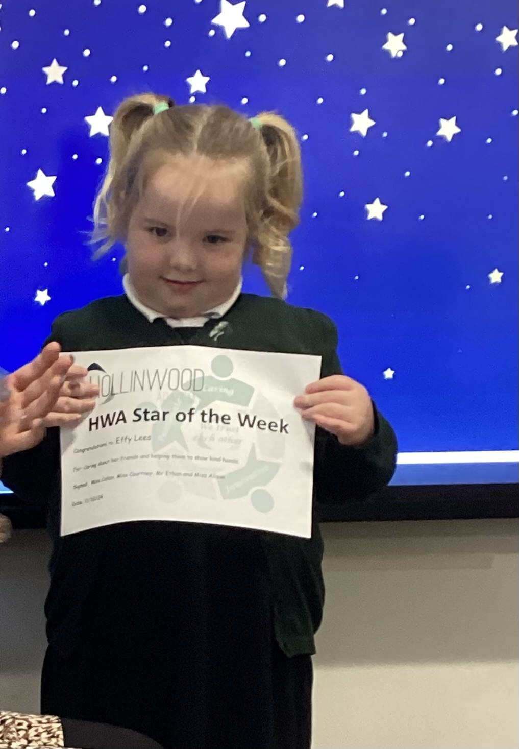 Miss Sutcliffe’s HWA We are Caring STAR is Effy for caring about her friends and helping them to show kind hands