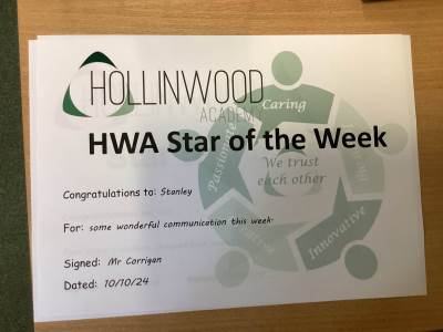 I am proud to showcase another productive and successful week of learning and adventure at Hollinwood Academy. Our office door has not stopped this week with children and young people showing off their work to SLT. I was delighted with how proud they were of their achievements.