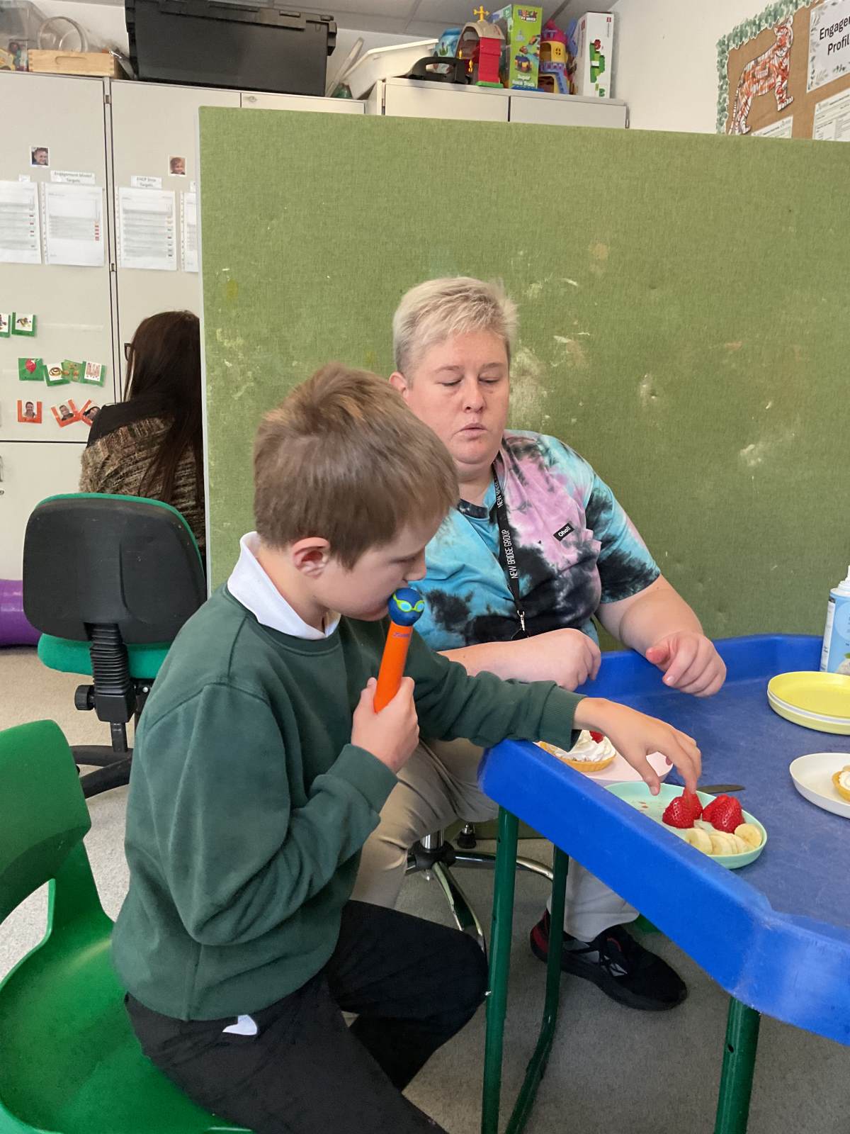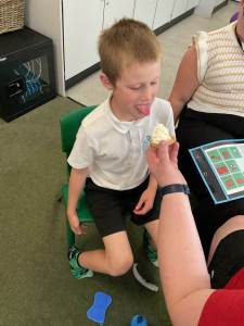 In communication, we’ve continued working hard on developing our social interaction and expressive skills. The children have taken part in exciting Attention Autism sessions, where we’ve been practising focus and turn-taking through high-interest activities—including launching rocket balloons, which brought lots of smiles and laughter! We’ve also been using TD Snap to support our communication, taking part in interactive tasks like making foam ice creams and playing basketball turn-taking games. It’s been wonderful to see the children using their voices—through speech, signs, symbols, or devices—and growing in confidence each week.