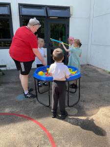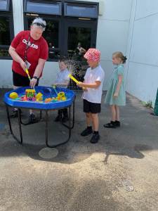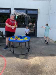 With the sunny weather making a return appearance, we’ve made the most of our outdoor space, enjoying water play with our friends from other Engage classes. There were giggles, splashes, and even a few ice pops to help us keep cool.