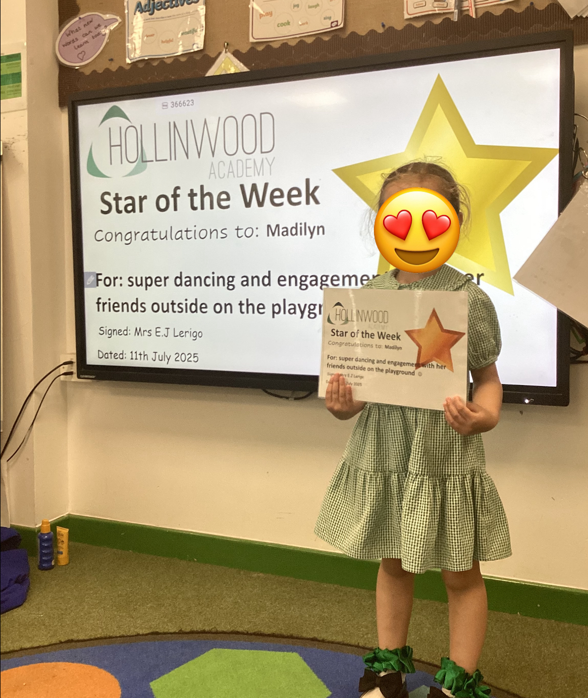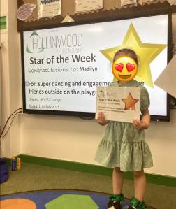 Mrs Lerigo’s STAR of the week is Madilyn for super dancing and engagement with her friends outside on the playground.