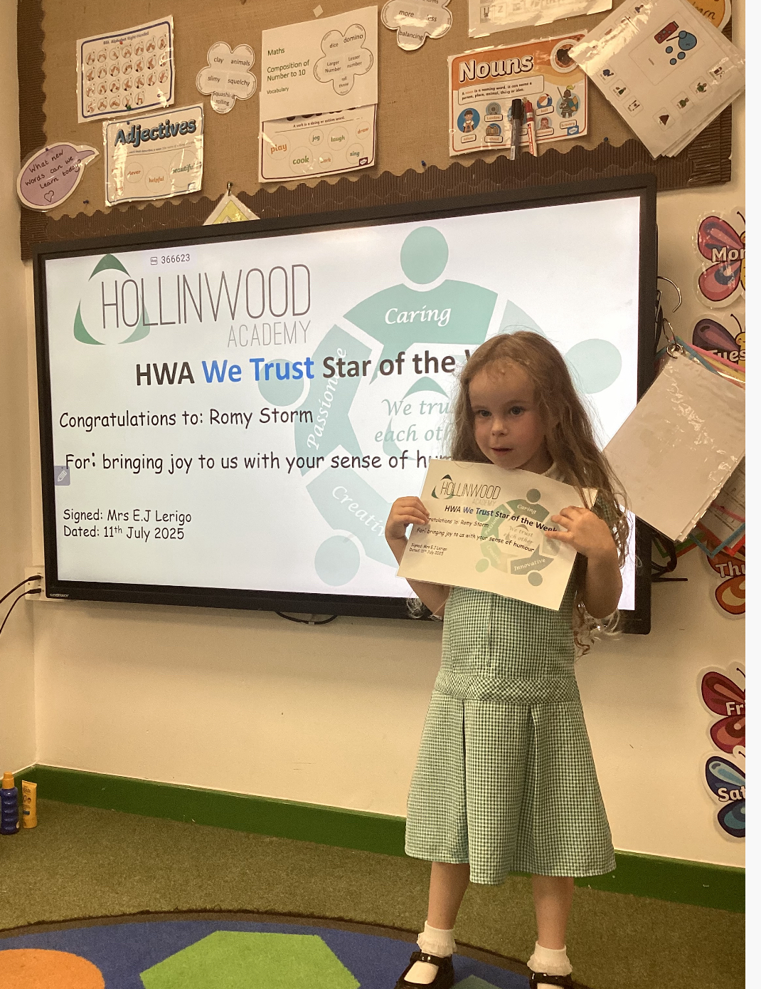 Mrs Lerigo’s HWA We are trusting goes to Romy for bringing joy to us with your sense of humour.