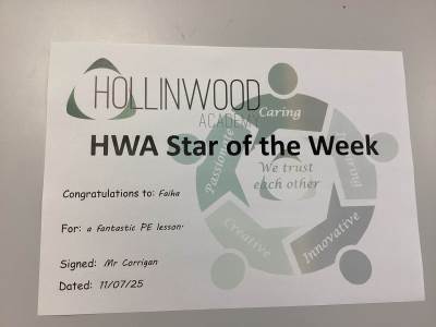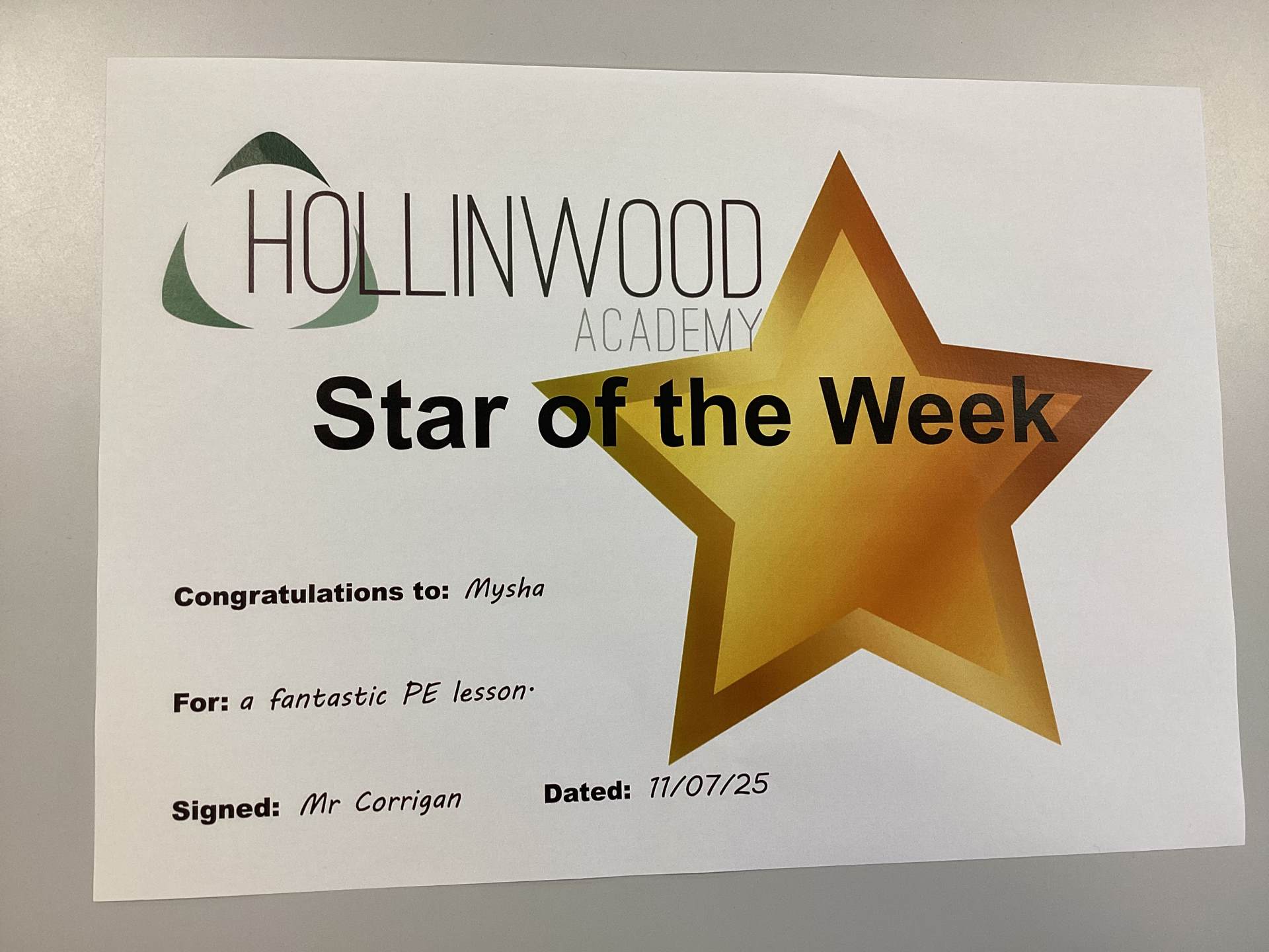 Mr Corrigan’s STAR of the week is Mysha for a fantastic PE lesson.
