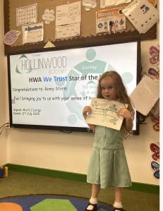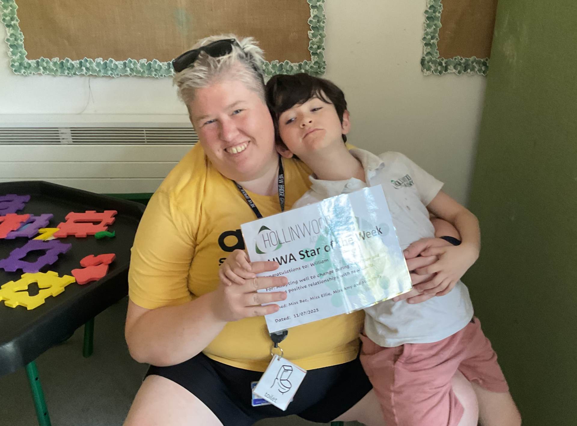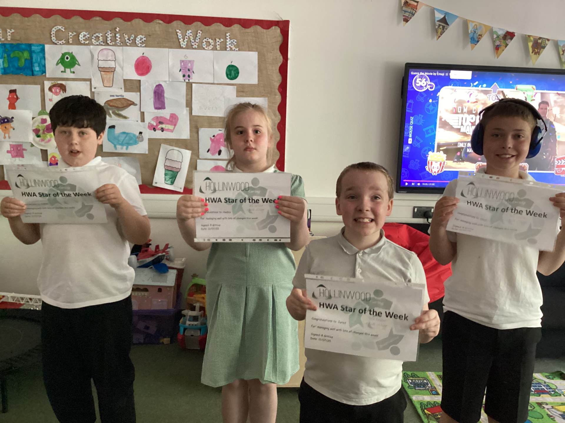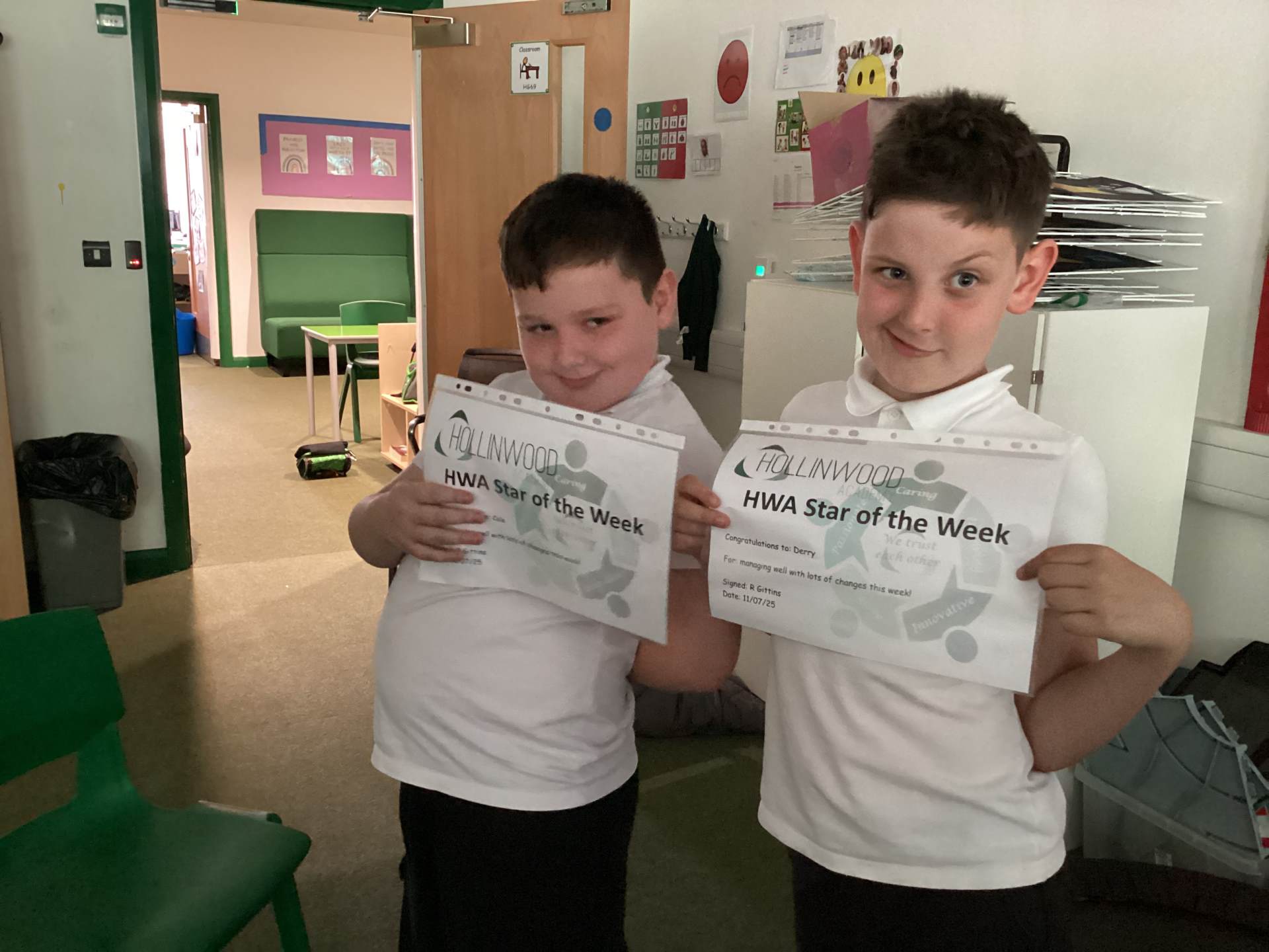 Miss Oakley’s HWA We are trusting goes to Harry H- for coping with transitions so incredibly well and designing what he wants his corner in the classroom to look like.