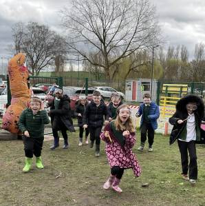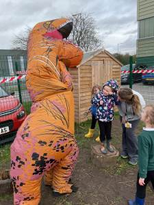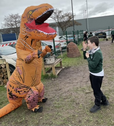 To end the excitement, a T-Rex visited the garden to congratulate our young scientists on their fantastic work.