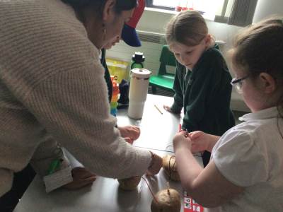 In the classrooms, the children also carried out exciting scientific experiments. They observed a carbon-dioxide reaction in the Mentos and lemonade investigation, explored colour diffusion with Skittles and milk, generated electricity using potatoes to light a bulb, and compared density in a float-and-sink activities. They made predictions, observed changes, and used scientific vocabulary throughout.