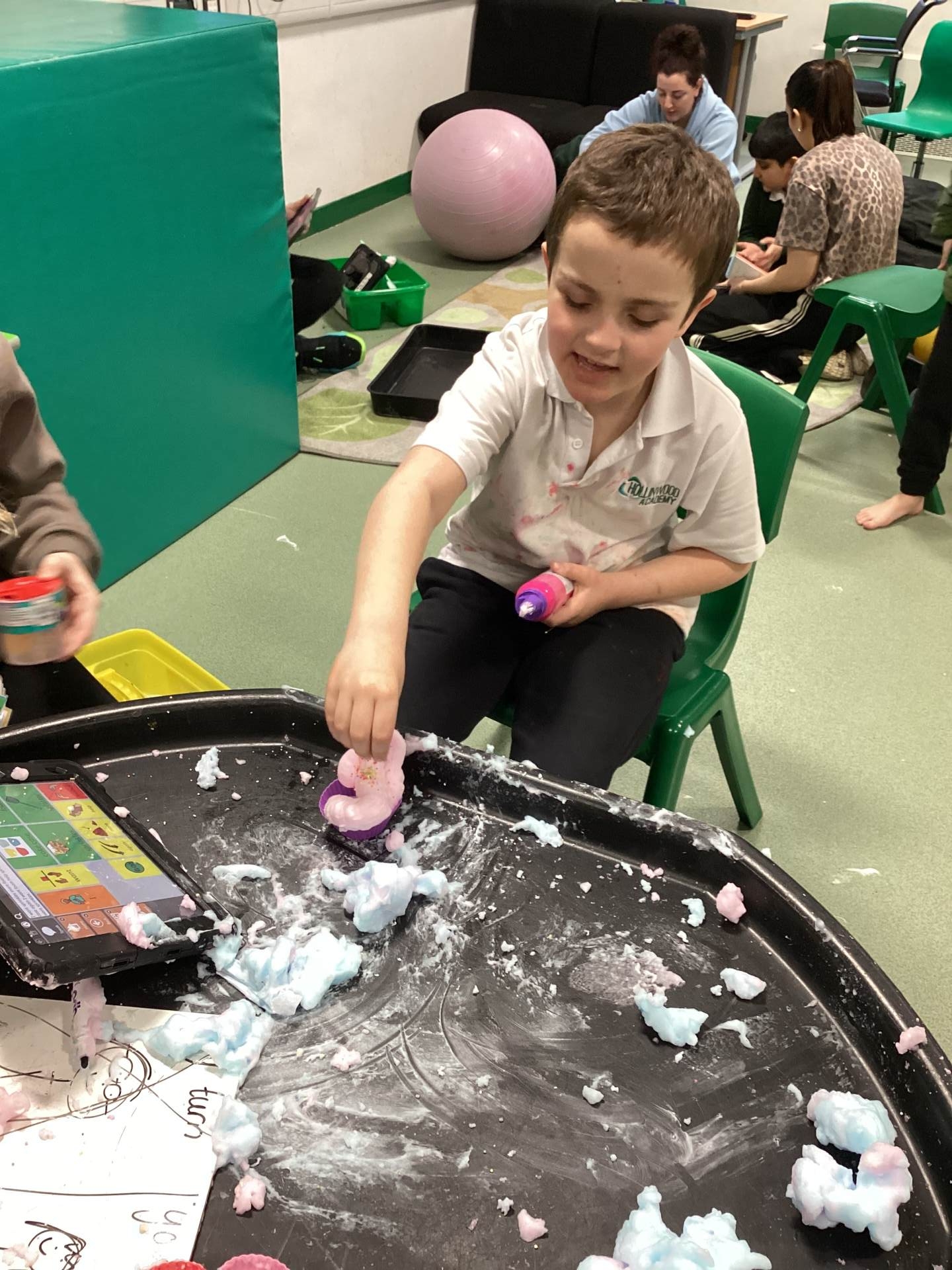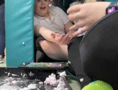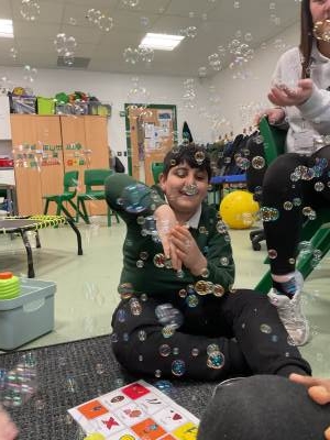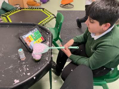 Our Attention Autism sessions have centred around our core word of the week: “more.” We watched Miss Bec demonstrate exciting Stage 2 activities, including a lemonade volcano and a lava lamp, both of which produced wonderful visual effects that the children adored. In Stage 3, we practised our turn-taking skills using Rocket Balloons, took turns being pushed on the Rocket Chair, and created a brilliant Fizzing Rainbow using coloured lemon juice and bicarbonate of soda. Throughout all these activities, the children practised requesting “more” using words, signs, and communication boards. In communication lessons, we continued building on this by asking for the things we needed to make a cake using foam for us to SPLAT! This was a big hit, very motivating, very engaging, and very messy!