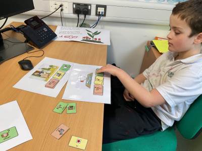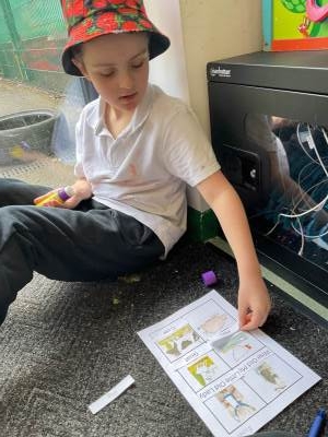 Miss Pietraszewska’ s STAR of the Week goes to Benjamin for showing fantastic progress in Colourful Semantics—independently creating a full sentence with the strips and even writing it down on his own. Amazing.
